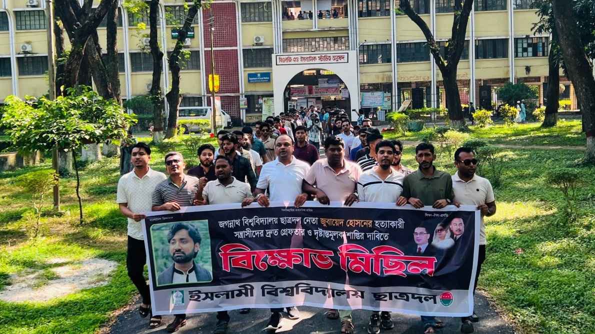 জগন্নাথ বিশ্ববিদ্যালয়ের (জবি) শিক্ষার্থী ও শাখা ছাত্রদল নেতা জুবায়েদের হত্যাকারীদের গ্রেফতার ও দৃষ্টান্তমূলক শাস্তির দাবিতে বিক্ষোভ মিছিল করেছে ইসলামী বিশ্ববিদ্যালয় (ইবি) শাখা ছাত্রদল।