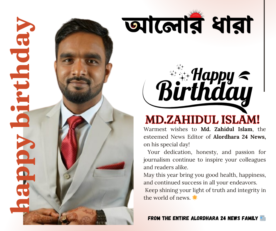 আজ “আলোরধারা ২৪ নিউজ”-এর বার্তা সম্পাদক মো: জাহিদুল ইসলাম-এর জন্মদিন।