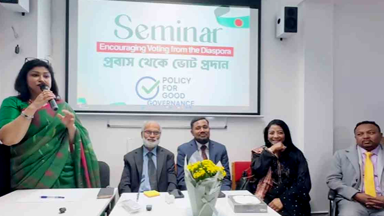আসন্ন জাতীয় সংসদ নির্বাচনে প্রবাসী ভোটারদের অংশগ্রহণ সহজতর করা এবং ভোটাধিকার প্রয়োগে উৎসাহিত করার লক্ষ্যে লন্ডনে সেমিনার অনুষ্ঠিত হয়েছে। পলিসি ফর গুড গভর্নেন্স ইউকে এই সেমিনারের আয়োজন করে।