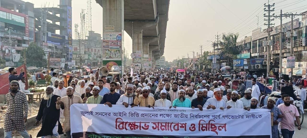 নারায়ণগঞ্জের রূপগঞ্জে জুলাই সনদের আইনি ভিত্তি প্রদানের লক্ষ্যে ও জাতীয় নির্বাচনের পূর্বে গণভোটের দাবীতে বিক্ষোভ সমাবেশ ও মিছিল করেছে জামায়াতে ইসলামীর নারায়ণগঞ্জ জেলার নেতৃবৃন্দ। শুক্রবার বাদ জুম্মা ঢাকা সিলেট মহাসড়কের ভুলতা চত্বরে এ সমাবেশ অনুষ্ঠিত হয়। পরে বিক্ষোভ মিছিল বের করে ভুলতা, গাউসিয়া সহ আশপাশের বিভিন্ন সড়ক প্রদক্ষিণ করে।