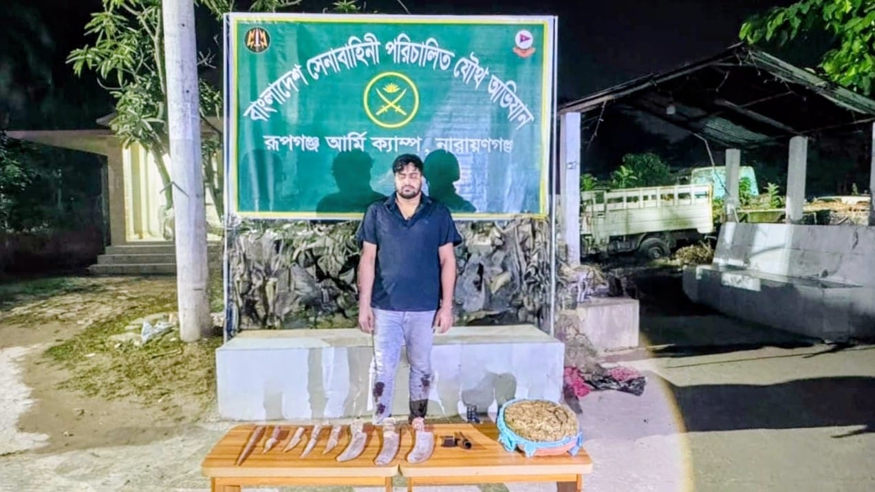 নারায়ণগঞ্জের রূপগঞ্জ উপজেলার মুড়াপাড়া ইউনিয়নের মাছিমপুর এলাকায় সেনাবাহিনীর অভিযানে বিপুল পরিমাণ দেশি-অস্ত্র ও মাদকদ্রব্য উদ্ধার করা হয়েছে। এ সময় শীর্ষ সন্ত্রাসী ও মাদক ব্যবসায়ী সোহাগ মিয়া(৩০)কে গ্রেপ্তার করে রূপগঞ্জ আর্মি ক্যাম্পের একটি আভিযানিক দল। মাদক ব্যবসায়ী সোহাগ মিয়া মাসিমপুর কান্তিক পাড়া এলাকার ভূমিদস্যু ইয়াকুব মিয়ার ছেলে। সুনির্দিষ্ট গোয়েন্দা তথ্যের ভিত্তিতে রূপগঞ্জ আর্মি ক্যাম্পের একটি চৌকস দল শনিবার (৬) ডিসেম্বর রাতে এই অভিযান পরিচালনা করে।