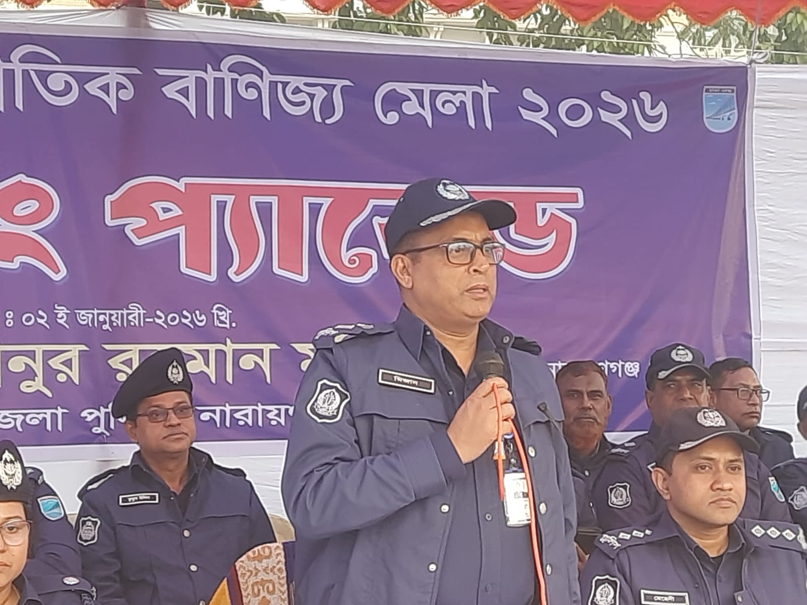 আগামী ৩ জানুয়ারি (শনিবার) ২০২৬ খ্রি. শুভ উদ্বোধন হতে যাচ্ছে আন্তর্জাতিক বাণিজ্য মেলার ৩০ তম আসর। এ সংক্রান্তে আজ ০২ জানুয়ারি ২০২৬ খ্রি. পূর্বাচলের ৪ নম্বর সেক্টরে বাংলাদেশ চায়না ফ্রেন্ডশিপ এক্সিবিশন সেন্টার সংলগ্ন মাঠে নিরাপত্তা সংক্রান্ত ব্রিফিং প্যারেড অনুষ্ঠিত হয়। উক্ত ব্রিফিং প্যারেডে সভাপতিত্ব করেন নারায়ণগঞ্জ জেলার সুযোগ্য পুলিশ সুপার জনাব মোহাম্মদ মিজানুর রহমান মুন্সী মহোদয়। এসময় পুলিশ সুপার মহোদয় ডিউটিতে নিয়োজিত পুলিশ সদস্যদের উদ্দেশ্যে সহনশীলতা, আন্তরিকতা ও ধৈর্যের সাথে দায়িত্ব পালনের জন্য দিকনির্দেশনা প্রদান করেন। মাসব্যাপী আন্তর্জাতিক বাণিজ্য মেলায় বিভিন্ন স্টল ও দর্শনার্থীদের নিরাপত্তা এবং ট্রাফিক নিয়ন্ত্রণে নারায়ণগঞ্জ জেলা পুলিশসহ পার্শ্ববর্তী ১০ টি জেলার মোট ৮৩৪ জন পুলিশ সদস্য পালাক্রমে ডিউটিতে মোতায়েন থাকবে। এ সময় জেলা পুলিশের ঊর্ধ্বতন কর্মকর্তাবৃন্দসহ ডিউটিতে নিয়োজিত পুলিশ সদস্যবৃন্দ উপস্থিত ছিলেন।