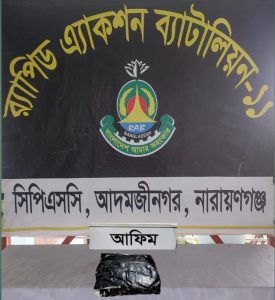 পৃথক আরেকটি অভিযানে আজ ০১ ফেব্রুয়ারি ২০২৬ তারিখ রাত আনুমানিক ৫টা ৩০ মিনিটে র‍্যাব-১১, সিপিসি-৩ নারায়ণগঞ্জ জেলার সিদ্ধিরগঞ্জ থানাধীন সাইনবোর্ড এলাকা থেকে পরিত্যক্ত অবস্থায় ৬৭৮ গ্রাম অবৈধ মাদকদ্রব্য আফিম উদ্ধার করতে সক্ষম হয়।