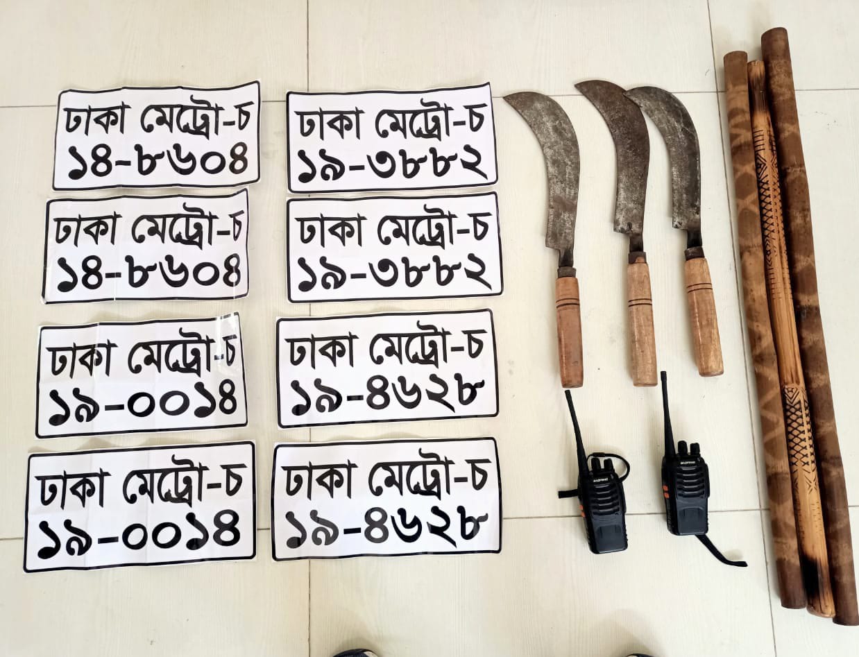অদ্য ১৬ ফেব্রুয়ারি ২০২৬খ্রি: দিবাগত রাত অনুমান ০২.৩০ ঘটিকার সময় রূপগঞ্জ থানার পূর্বাচল পুলিশ ক্যাম্পের ইনচার্জ এসআই (নিঃ) হারুনুর রশিদ সঙ্গীয় ফোর্সসহ থানা এলাকায় পূর্বাচল-৫৩ ডিউটি করা কালে মোবাইল ফোনের মাধ্যমে সংবাদ পান যে, রূপগঞ্জ থানাধীন রূপগঞ্জ ইউনিয়নের অর্ন্তগত ৩০০ ফিট ল্যাংটা মাজার গোলচত্তর হতে কাঞ্চনমুখী ১০০ মিঃ পূর্ব দিকে মহাসড়কের উপরে বিমানবন্দর হতে বিদেশ ফেরৎ যাত্রীসহ ব্রাহ্মণবাড়িয়া যাওয়ার উদ্দেশ্যে ঢাকা মেট্রো-গ-২৩-১৯০৮ এক্স-ফিল্টার গাড়ীযোগে যাওয়ার পথে পিছন দিক থেকে আসা সিলভার রংয়ের একটি হাইচ, যার রেজিঃ নং-ঢাকা-মেট্রো-চ-১২-২২৯৯ হতে অজ্ঞাতনামা ৬/৭জন লোক নেমে পুলিশ পরিচয় দিয়ে উক্ত গাড়ীকে গতিরোধ করে। গাড়ী হতে বিদেশ ফেরৎ যাত্রী সুমনকে টেনে হেঁচড়ে তাদের গাড়ীতে তোলে। পরবর্তীতে এস.আই/হারুনুর রশিদ সঙ্গীয় ফোর্সসহ উক্ত মাইক্রোবাসকে পিছন দিক থেকে ধাওয়া করলে উক্ত গাড়ীর চালক নিয়ন্ত্রণ হারিয়ে প্রথমে একটি ট্রাককে পিছন দিক থেকে ধাক্কা দেয়। এতে উক্ত মাইক্রোবাসের সামনের অংশে ক্ষতিগ্রস্ত হয়। একপর্যায়ে উক্ত হাইচ মাইক্রোবাস হতে বিদেশ ফেরৎ যাত্রী সুমনকে ধাক্কা দিয়ে ফেলে দেয়। পরবর্তীতে গাড়িটি রূপগঞ্জ থানাধীন ০৩ নং সেক্টর প্রগতি স্কুলের সামনে অজ্ঞাতনামা ৭/৮ জন দুর্বৃত্ত গাড়িটি ফেলে পালিয়ে যায়। ফেলে যাওয়া গাড়ির মধ্য হতে পুলিশ একটি কালো রংয়ের ব্যাগে রক্ষিত ০৮টি নকল নাম্বার প্লেট, (১) যার ০২টি ঢাকা মেট্রো-চ-১৪-৮৬০৪, ০২টি ঢাকা মেট্রো-চ-১৯-০০১৪, ০২টি ঢাকা মেট্রো-চ-১৯-৩৮৮২, ০২টি ঢাকা মেট্রো-চ-১৯-৪৬২৮, (২) ০২টি কালো রংয়ের ওয়ারলেস সাদৃশ্য ওয়াকিটকি, (৩) ০৩টি দা এবং (৪) ০৩টি লাঠি উদ্ধার করেন। প্রকাশ থাকে যে, আটককৃত গাড়িটি সামনে এবং পিছনের নাম্বার প্লেটটিও নকল। উক্ত। যাত্রীবাহী প্রাইভেট কারের চালক মোজাহিদ খাঁ এবং যাত্রী সুমন মিয়াকে দুর্বৃত্তরা আঘাত করলে পুলিশ তাদের উদ্ধার করে চিকিৎসার জন্য হাসপাতালে প্রেরণ করে।