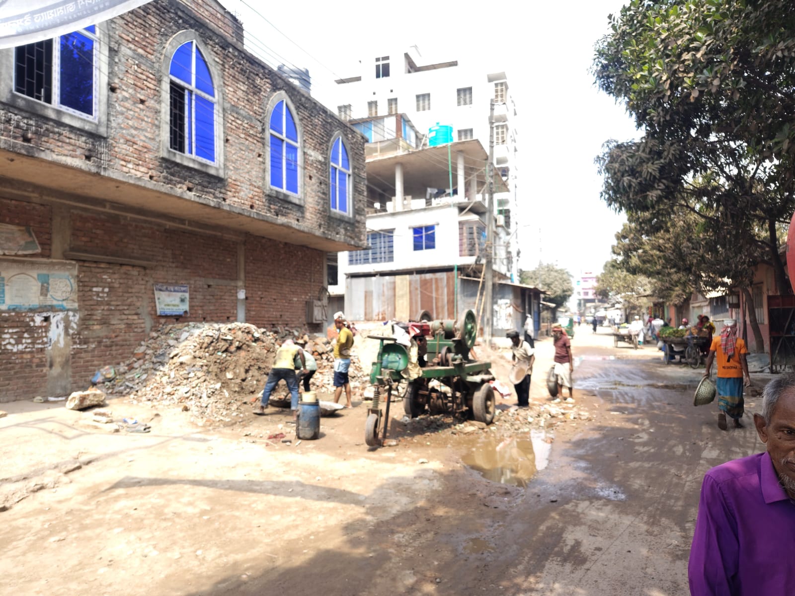শনিবার (৭ মার্চ) সিদ্ধিরগঞ্জের ৬ নং ওয়ার্ডস্থ গোদনাইল মন্ডলপাড়া এলাকায় ঘটনার সত্যতা যাচাই করতে, সরেজমিনে গিয়ে দেখা যায়, ফাতেমা (রাঃ) জামে মসজিদের সামনে ইটের খোয়া, ইট ভাঙ্গার মেশিন বালুর স্তুপ রাখা হয়েছে।