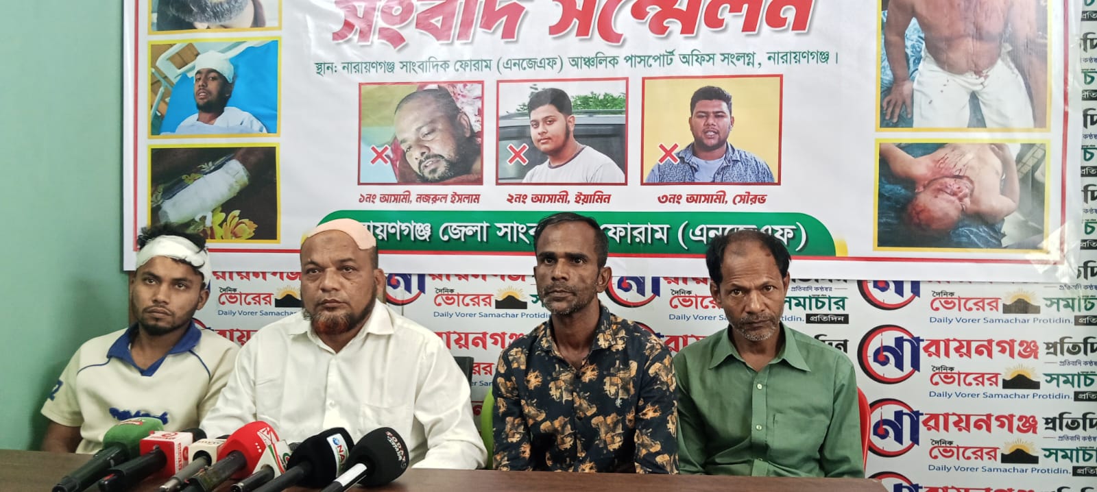 নারায়ণগঞ্জের রূপগঞ্জে তুচ্ছ ঘটনাকে কেন্দ্র করে একই পরিবারের চার সদস্যকে দেশীয় অস্ত্রশস্ত্র দিয়ে কুপিয়ে ও পিটিয়ে নৃশংসভাবে জখম করার প্রতিবাদে সংবাদ সম্মেলন অনুষ্ঠিত হয়েছে। আজ শনিবার (১৪ মার্চ) দুপুরে নারায়ণগঞ্জ জেলা সাংবাদিক ফোরাম (এনজেএফ) কার্যালয়ে এই সংবাদ সম্মেলন করেন ভুক্তভোগী মোহাম্মদ বাদল ভূঁইয়া।