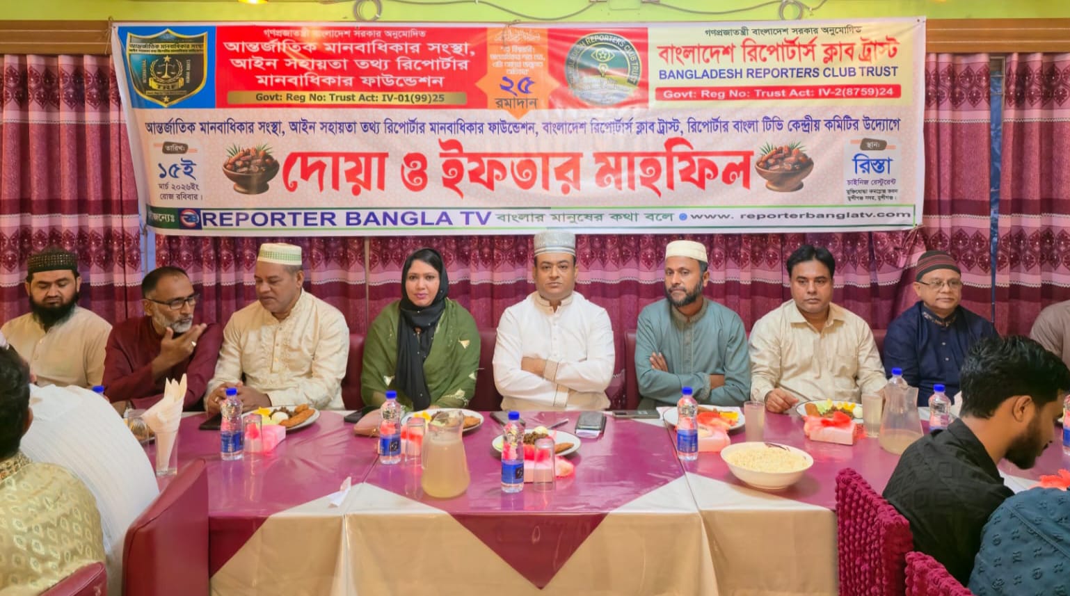 আজ ১৫ ই মার্চ ২০২৬ ইংরেজি রোজ রবিবার ২৫ শে রমজান আন্তর্জাতিক মানবাধিকার সংস্থা আইন সহায়তা তথ্য রিপোর্টার মানবাধিকার ফাউন্ডেশন ও বাংলাদেশ রিপোর্টার্স ক্লাব ট্রাস্ট কেন্দ্রীয় কমিটির ইফতার ও দোয়া মাহফিল অনুষ্ঠিত হয়েছে। উক্ত ইফতার ও দোয়া মাহফিল অনুষ্ঠানে উপস্থিত ছিলেন সংগঠনের প্রতিষ্ঠাতা চেয়ারম্যান মফিজুর রহমান সোহেল, এডভোকেট লাকি আক্তার মহাসচিব কেন্দ্রীয় কমিটি, এসএম জহিরুল ইসলাম বিদ্যুৎ সহ-সভাপতি কেন্দ্রীয় কমিটি, সাইদুর রহমান সাঈদ পরিচালক কেন্দ্রীয় কমিটি, শফিকুল ইসলাম পরিচালক কেন্দ্রীয় কমিটি,উপস্থিত ছিলেন সাংবাদিক গোলজার হোসেন উপদেষ্টা কেন্দ্রীয় কমিটি, ছাদেক হোসেন উপদেষ্টা কেন্দ্রীয় কমিটি, সাইফুল ইসলাম মোল্লা সাংগঠনিক সম্পাদক কেন্দ্রীয় কমিটি, সহ বিভিন্ন সংগঠনের গুণীজন ব্যক্তিবর্গ। ইফতারির পূর্ব মুহূর্তে প্রতিষ্ঠাতা চেয়ারম্যান মফিজুর রহমান সোহেল সকলের কাছে সংগঠনের ভালো কাজ করা ও মানুষের সেবা করে সারা জীবন মানুষের সেবা করতে পারি সেই লক্ষ্যে দেশবাসীর কাছে দোয়া প্রার্থনা করেন,এ সময় সংগঠনের অন্যান্য নেতৃবৃন্দ সাংগঠনিক দিকনির্দেশনা বক্তব্য দেন।সর্বোপরি সকল মুসলিম পরিবার ও দেশবাসী সকলের জন্য দোয়া অনুষ্ঠিত হয়।
