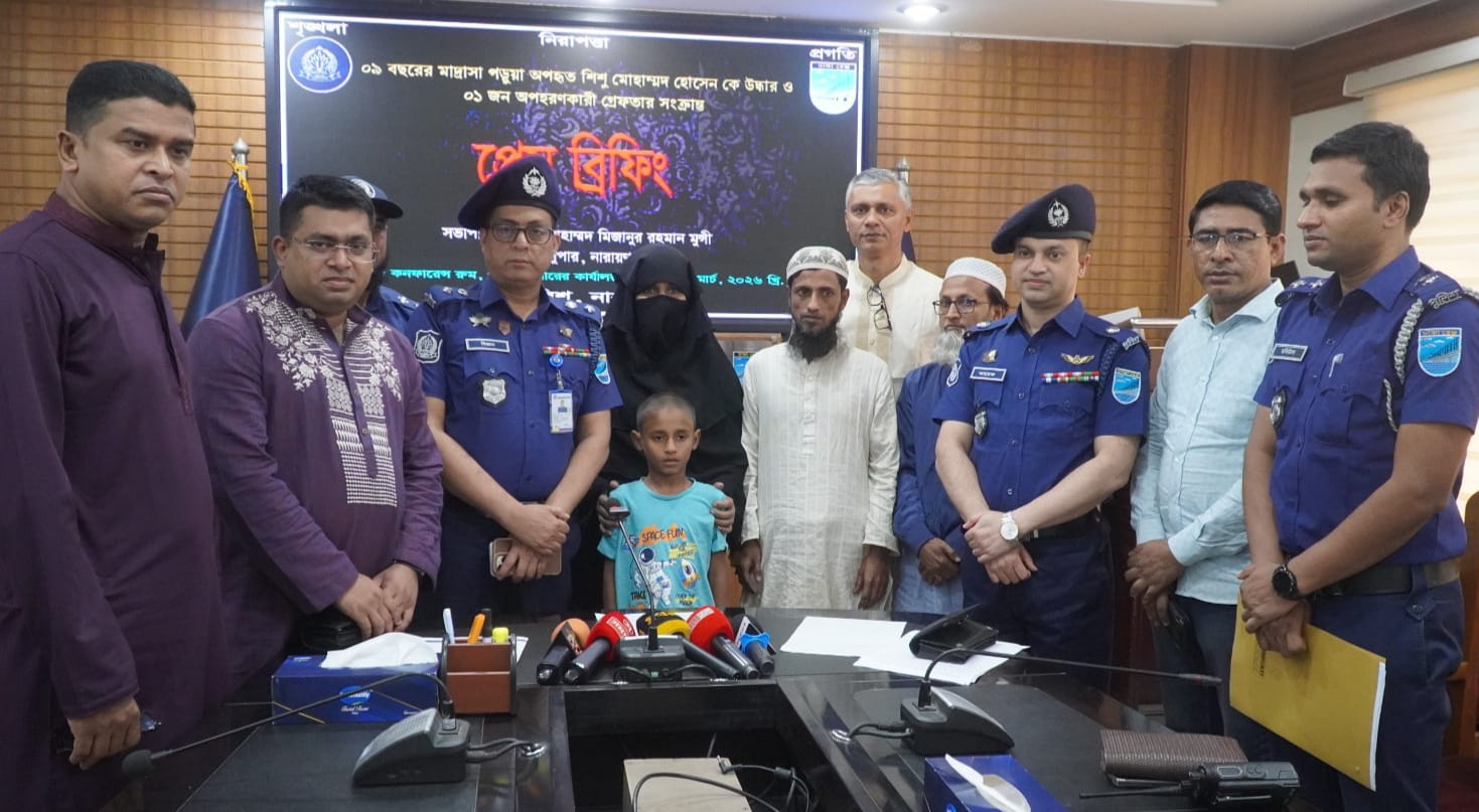 ১৯ মার্চ ২০২৬ খ্রি. বিকাল অনুমান ০৪.১৫ ঘটিকার সময় নারায়ণগঞ্জ জেলার বন্দর থানার চাঁনপুর গ্রামের জনৈক মোহাম্মদ মোশারফ হোসেন ভূইয়া (৪৭) এর মাদ্রাসা পড়ুয়া ০৯ বছরের ছেলে মোহাম্মদ হোসেন এলাকার অন্যান্য ছেলেদের সাথে খেলাধুলা করার জন্য বাড়ি হতে বের হয়ে যায়। পরবর্তীতে মোহাম্মদ হোসেন বাড়িতে না ফেরায় পরিবারের লোকজন তাকে বিভিন্ন জায়গায় খোঁজাখুঁজি করে। কিন্তু কোথাও কোনো সন্ধান পায় না। রাত আনুমানিক ০৯.৩০ ঘটিকায় অজ্ঞাতনামা ব্যক্তির মোবাইল নম্বর হতে মোহাম্মদ মোশারফের পরিচিত মোঃ হৃদয় এর ব্যবহৃত মোবাইলে কল করে জানায় যে, অজ্ঞাতনামা ব্যক্তিরা তার ছেলেকে অপহরণ করে আটক করে রেখেছে। তারা তার ছেলের মুক্তিপণ হিসাবে ১০,০০,০০০/-(দশ লক্ষ) টাকা দাবি করে এবং জানায় যে, যদি তাদের দাবীকৃত টাকা না দেয় তাহলে তার ছেলেকে খুন করে লাশ গুম করে ফেলবে। পরবর্তীতে অজ্ঞাতনামা আসামিরা পুনরায় ভিকটিমের বাবাকে ফোন করে তাদের দাবীকৃত টাকা দেওয়ার জন্য চাপ প্রয়োগ করতে থাকে। উল্লেখ্য যে, ভিকটিম মোহাম্মদ হোসেন মদনপুর হেদায়েতপাড়া জামেয়া রশিদিয়া মাদ্রাসায় পড়াশোনা করে।